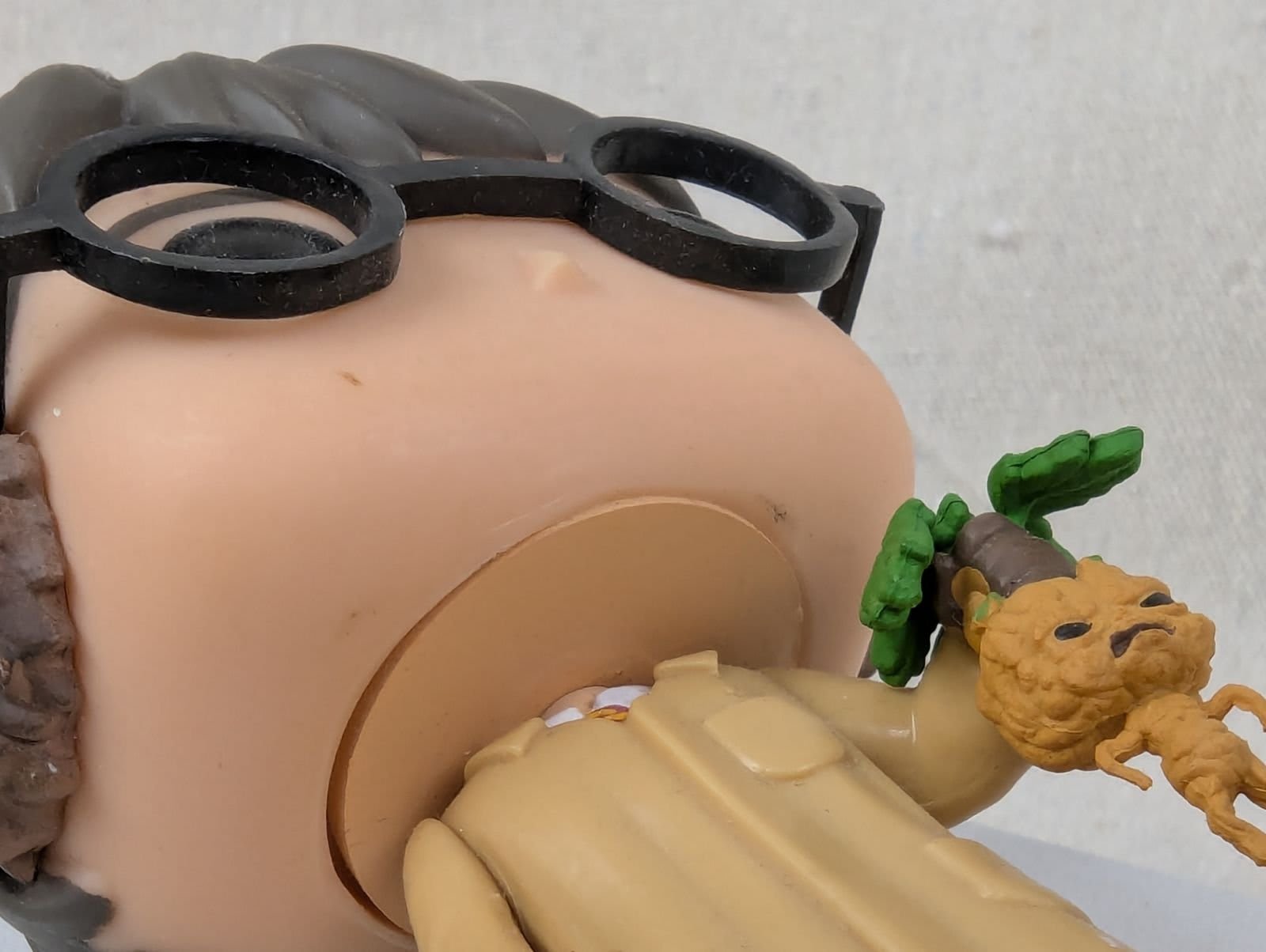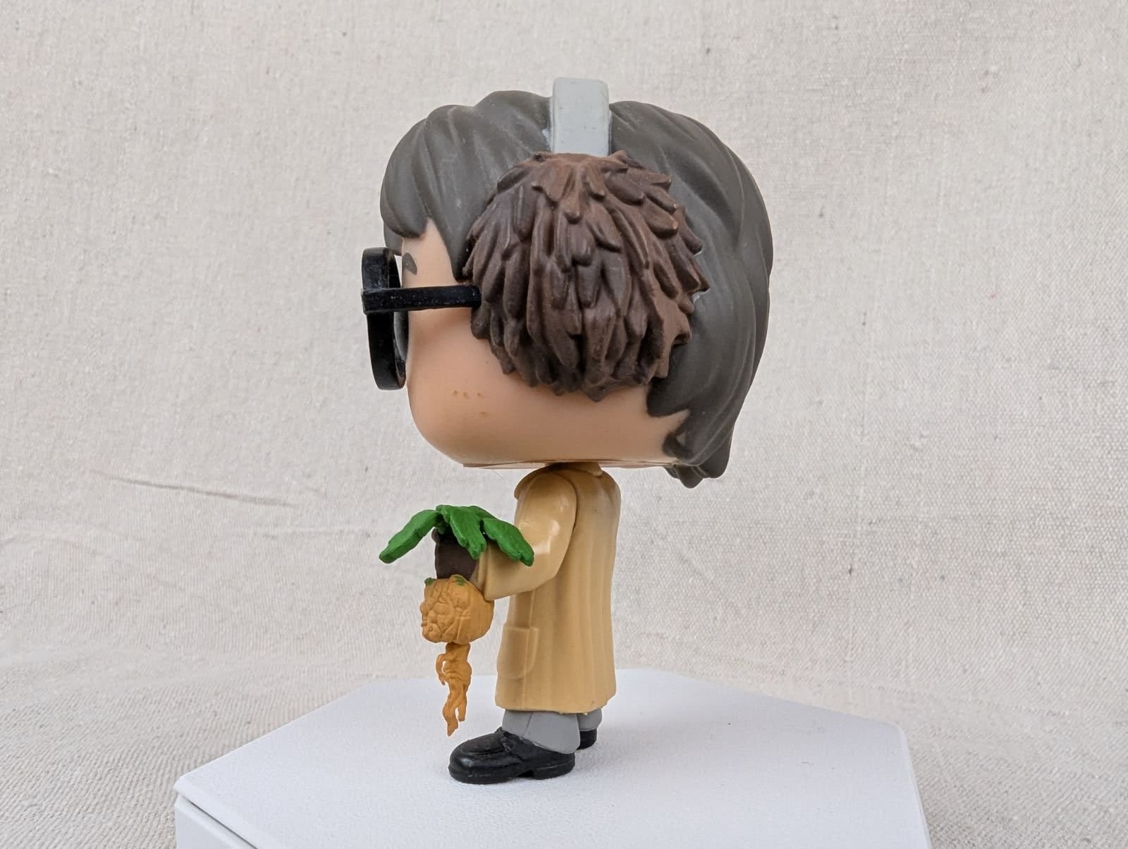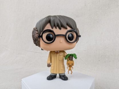 This Funko Pop! figure from the Harry Potter series features Harry Potter in Herbology class with a Mandrake. This vinyl collectible figure depicts Harry wearing earmuffs and holding the potted, pineapple-shaped plant. The Harry Potter Herbology with Mandrake Funko Pop! is number 55 in the series.