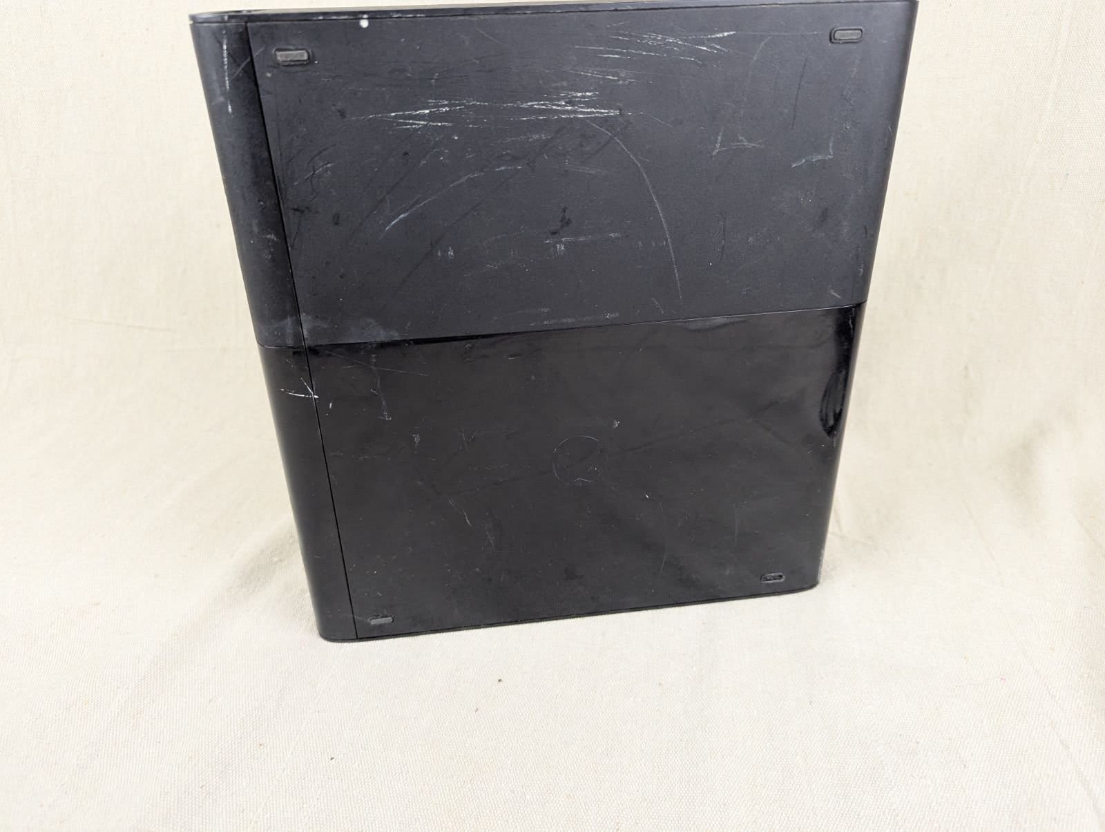 For Parts | The Xbox 360 console is being sold for parts or repair. It has not been tested and its functionality is unknown. The listing includes the console and an AC adapter with a single-prong plug, but the power cable to connect the adapter to a wall outlet is missing. The console case exhibits moderate to major cosmetic damage including scuffs, scrapes, scratches, dirt, and dust. Parts of the case may be broken or missing.